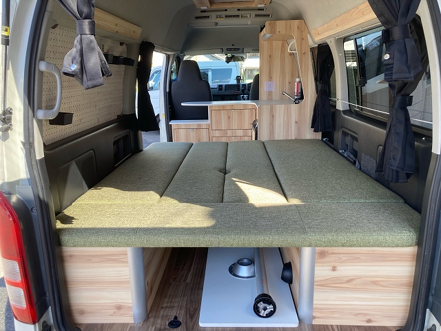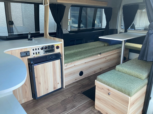 ※貸し出し車両が複数台ある為、レイアウトは同じでも画像とシート生地や家具の色・形など若干相違がありますので予めご理解ください。
